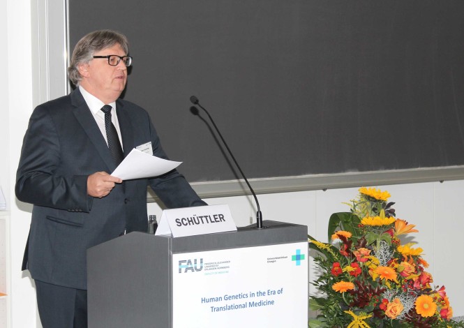 Anlässlich des 50. Jahrestages der Gründung des Humangenetischen Institutes in Erlangen fand am 2. Oktober 2015 ein Symposium mit internationalen Gästen statt. Mit Fokus auf der translationalen Medizin diskutierten nationale und internationale Experten die zukünftigen Herausforderungen und Möglichkeiten der Humangenetik. Ein wichtiges Thema war dabei die von ehemaligen und aktuellen Mitarbeitern vorgestellte erfolgreiche Anwendung neuer Technologien im Rahmen der personalisierten Medizin.