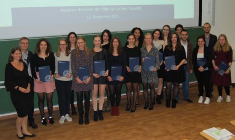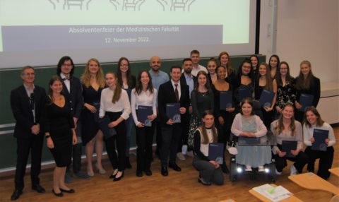 Am 12. November füllte sich der Hörsaal der Vegetativen Physiologie ausnahmsweise nicht für eine Vorlesung, sondern um Absolventinnen und Absolventen sowie Preisträgerinnen und Preisträger der Medizinischen Fakultät zu feiern. Die Zeugnisverleihung für die Studiengänge Molekulare Medizin (B. Sc.), Molecular Medicine (M. Sc.) und Medical Process Management (MPM, M. Sc.) sowie die Verleihung des Cord-Michael Becker-Preises und der Masterpreise der Fakultät standen auf der Agenda.