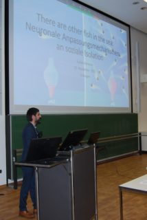 Im zweiten Teil der Veranstaltung erlebten die Absolventinnen und Absolventen, wie sich eine erfolgreiche wissenschaftliche Karriere nach dem Studium entwickeln kann. Für herausragende Leistungen in der Promotionsarbeit wurde Herr Dr. rer. nat. Lukas Anneser, der selbst das Bachelorstudium Molekulare Medizin an der FAU absolviert hat, mit dem Cord-Michael Becker-Preis 2022 ausgezeichnet. Nach einem Masterstudium in Heidelberg promovierte Herr Dr. Anneser am Max-Planck-Institut für Hirnforschung und an der Johann Wolfgang Goethe-Universität Frankfurt am Main zum Thema „Transcriptional Responses to Social Isolation: Characterization of the Neuropeptide Parathyroid Hormone 2“. In ihrer per Video vorgetragenen Laudatio hob die Doktormutter, Professorin Dr. Erin Schuman, die Ironie des Schicksals hervor, dass Herr Dr. Anneser gerade in der Zeit der Pandemie-bedingten Isolation wichtige Erkenntnisse zur Bedeutung und molekularen Repräsentation sozialer Kontakte gewinnen konnte. Mit einem kurzweiligen Vortrag gab Herr Dr. Anneser einen näheren Einblick in seine Erkenntnisse, die er auch in der renommierten Fachzeitschrift Nature publizieren konnte. Der Vorsitzende des Stiftungsrates der Forschungsstiftung, Professor Dr. Dr. h.c. Werner Hohenberger verlieh den von der Forschungsstiftung Medizin des Universitätsklinikums Erlangen gestifteten Preis im Wert von 5000€ an einen würdigen Preisträger mit dem vielversprechenden Hinweis, dass die Forschungsstiftung auch schon künftige Nobelpreisträger geehrt habe!
