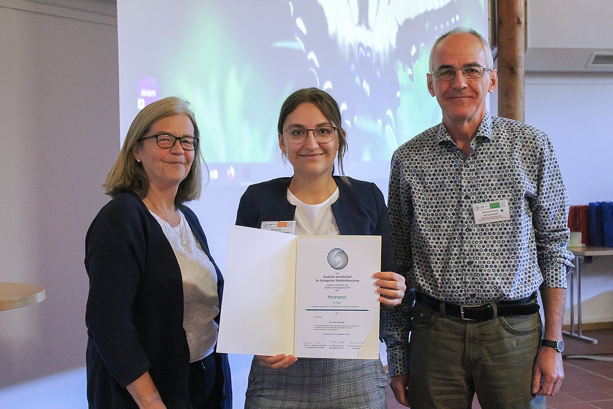 Im Rahmen der 24. Jahrestagung der Deutschen Gesellschaft für Biologische Strahlenforschung e. V. erhielt Ilka Scheer, Doktorandin in der Strahlenklinik (Direktor: Prof. Dr. Rainer Fietkau) des Uniklinikums Erlangen, den Posterpreis für ihre Arbeit zur Charakterisierung von TEMRA- und myeloiden Suppressor-Zellen bei Patientinnen und Patienten mit soliden Tumoren.