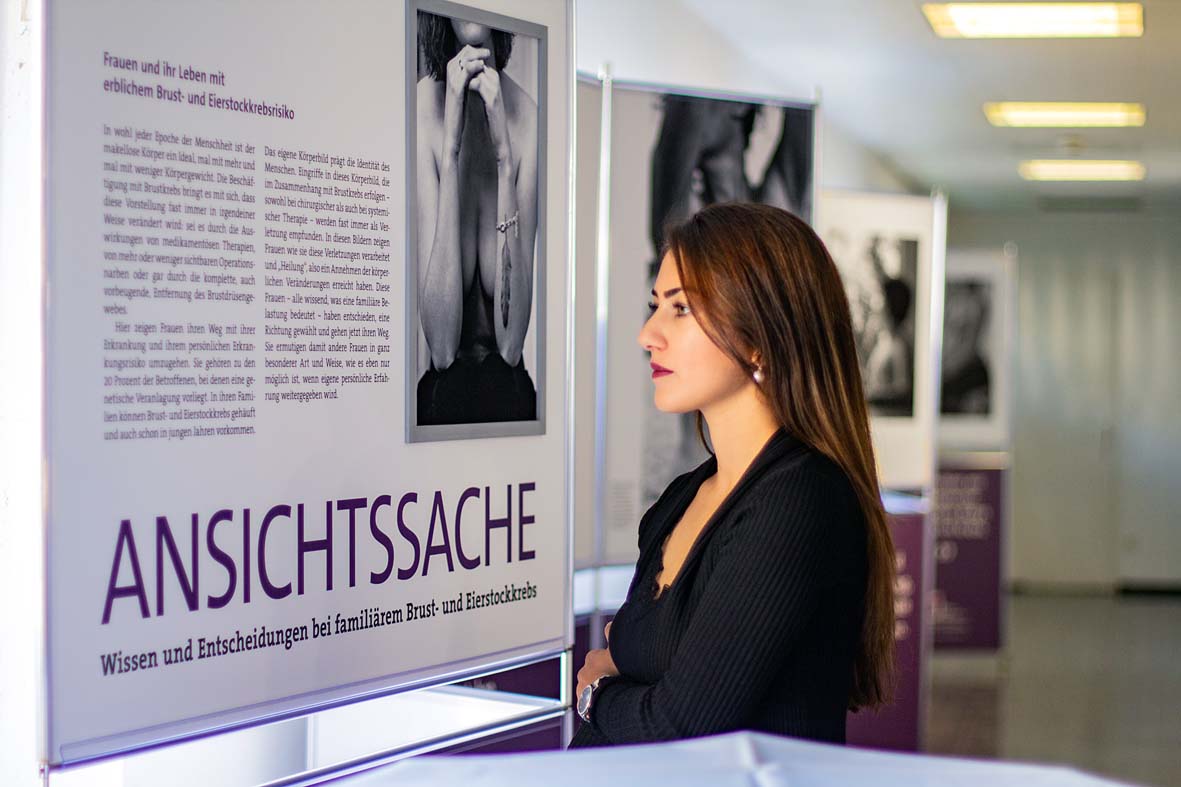 In Deutschland erkranken jedes Jahr rund 75.000 Frauen an Brustkrebs und 8.000 an Eierstockkrebs. Etwa ein Fünftel der Erkrankten hat eine genetische Veränderung, z. B. in den sogenannten BRCA-Genen (BReast CAncer, eng. Brustkrebs), die an ihre Kinder vererbt werden kann. In den Risiko-Familien treten Krebserkrankungen daher häufiger auf und betreffen oft junge Menschen. Um Patientinnen Ängste zu nehmen und ihnen Entscheidungshilfen an die Hand zu geben, hat das BRCA-Netzwerk e. V., eine von der Stiftung Deutsche Krebshilfe geförderte Selbsthilfegruppe und Patientenvertretung für Betroffene erblicher Krebserkrankungen, die Fotoausstellung „ANSICHTSSACHE. Wissen und Entscheiden bei familiärem Brust- und Eierstockkrebs“ ins Leben gerufen. Vom 7. November bis zum 5. Dezember 2023 ist die Wanderausstellung nun im zertifizierten Familiären Brust- und Eierstockkrebszentrum (Sprecher: Prof. Dr. Matthias W. Beckmann) des Uniklinikums Erlangen zu Gast.