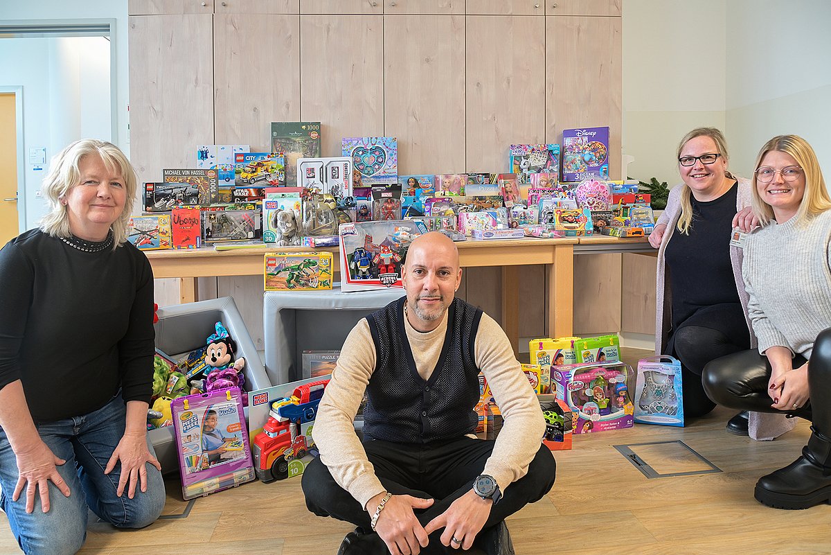 „Wir freuen uns jedes Jahr, euch, unsere Freundinnen und Freunde aus Grafenwöhr, wiederzusehen und wir sind überaus dankbar für eure großzügige Spende“, sagte Marion Müller bei der Übergabe der Spielsachen, Puzzles und Stofftiere. „Wir verteilen die Geschenke nicht nur zu Weihnachten, sondern mit Blick auf die vielen unterschiedlichen Konfessionen unserer Patientinnen und Patienten auch zu anderen Zeiten. Für die bei uns behandelten Kinder und Jugendlichen sind die Präsente immer eine willkommene Abwechslung im Klinikalltag, der je nach Erkrankung den Bewegungsradius doch sehr einschränken kann.“ Raymond Tavarez Gascot ergänzte: „Wir bitten in unserem Umfeld deshalb auch ausdrücklich darum, Geschenke für alle Altersgruppen zu spenden. So ist wirklich für jede und jeden etwas dabei und ich bin immer wieder fasziniert darüber, dass Marion und ihr Team genau wissen, welches Präsent zu welchem Kind passt. Das spricht ganz deutlich für die erstklassige Arbeit mit viel Empathie und Menschlichkeit, die sie leisten.“