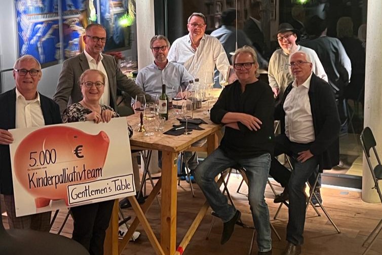 Etwa fünf bis sechs Mal im Jahr treffen sich Willi Graupe, Norbert Nägel, Klaus Steger, Roberto Stenner, Engelbert Jendrysczyk, Ludger Bischoff, Roberto Barrabas und Dominik Beck zu ihrem Gentlemen’s Table – einem Herrenabend zum Essen, Trinken, Diskutieren und Gutes tun. „Jedes Mal legen wir alle jeweils 100 Euro in einen Spendentopf, mit dem wir jährlich ein ausgewähltes soziales Projekt unterstützen“, erklärte Willi Graupe. In diesem Jahr kommt die Spendensumme in Höhe von insgesamt 5.000 Euro dem Kinderpalliativteam der Kinder- und Jugendklinik (Direktor: Prof. Dr. Joachim Wölfle) des Uniklinikums Erlangen zugute. Bei einem gemeinsamen Abendessen übergaben die Mitglieder des Gentlemen’s Table Erlangen den Spendenscheck an die Leiterin des Kinderpalliativteams Dr. Chara Gravou-Apostolatou.