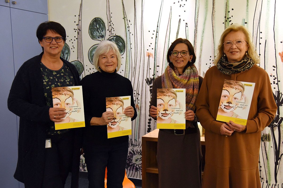 Jedes Jahr findet am Wochenende vor dem ersten Advent in Kunreuth der Adventsmarkt am Gasthaus zum Schloss statt. Traditionsgemäß veranstaltet das zuständige Organisationsteam dort unter anderem eine Tombola für den guten Zweck. Über den Erlös in Höhe von 1.450 Euro kann sich in diesem Jahr das Kinderpalliativteam der Kinder- und Jugendklinik (Direktor: Prof. Dr. Joachim Wölfle) des Uniklinikums Erlangen freuen. Die Adventsmarkt-Organisatorinnen Heidi Derbfuß und Inge Kaufmann trafen sich nun zur offiziellen Spendenübergabe mit Karin Büttner, Mitarbeiterin des Kinderpalliativteams, und Dr. Dorothea Hobeck, erste Vorsitzende von „Tigerauge“ Initiative Kinderhospiz e. V. Der Verein unterstützt die Kinderklinik seit mittlerweile 15 Jahren und fördert insbesondere die ambulante und stationäre palliative Versorgung.