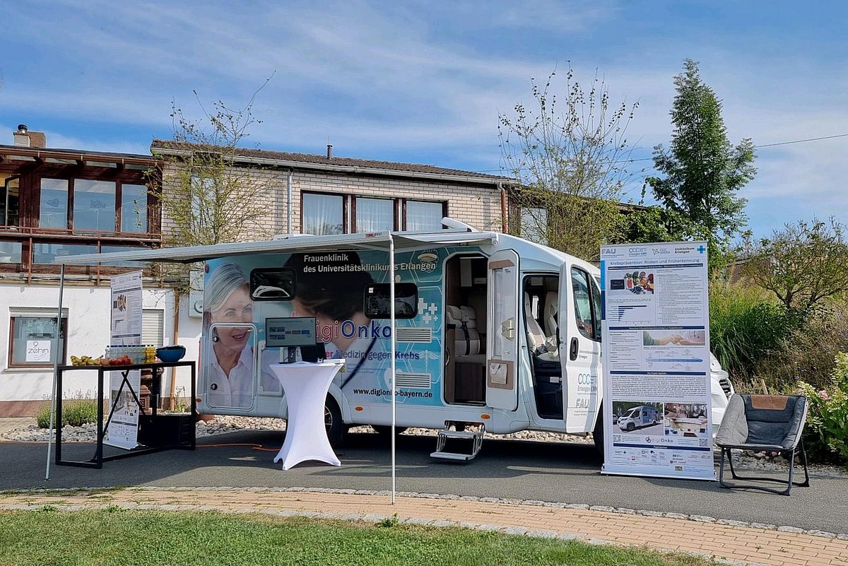 PD Dr. Hanna Hübner, Arbeitsgruppenleiterin Digitale und Personalisierte Medizin an der Frauenklinik des Uniklinikums Erlangen und Koordinatorin von „digiOnko“, stellt das Projekt regelmäßig bei Informations- und Aufklärungsveranstaltungen zum Thema (Brust-)Krebs in ganz Bayern vor: „Besucherinnen unseres ‚digiOnko‘-Präventionsmobils haben die Möglichkeit, innovative genomische und molekulare Tests kennenzulernen, die Hinweise auf die Entstehung von Krebserkrankungen geben können.“ In diesem Zuge neu entwickelt wurde auch die App „BayPass“, die es Nutzerinnen ermöglicht, ihr individuelles Krebsrisiko abzuschätzen und ihre eigenen Präventionsmaßnahmen zu bewerten.
