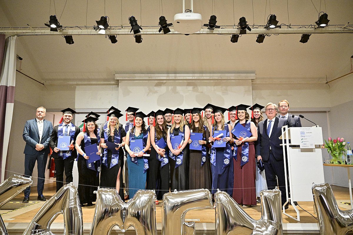 Sie sind motiviert, hervorragend ausgebildet – und jetzt auf dem Sprung ins Berufsleben: 23 junge Frauen und Männer haben soeben ihr Medizinstudium der FAU Erlangen-Nürnberg am Medizincampus Oberfranken (MCO) in Bayreuth erfolgreich abgeschlossen. Gestartet sind sie zum Wintersemester 2019/20 in Erlangen. Nach der vorklinischen Ausbildung wechselten die Studierenden im Sommersemester 2022 für ihren klinischen Abschnitt nach Bayreuth. Das Besondere: Sie sind die ersten Absolventinnen bzw. Absolventen im Rahmen dieses wegweisenden Kooperationsprojekts unter Federführung der Medizinischen Fakultät der Friedrich-Alexander-Universität Erlangen-Nürnberg (FAU) in Kooperation mit dem Klinikum Bayreuth, dem Uniklinikum Erlangen, den Gesundheitseinrichtungen des Bezirks Oberfranken sowie der Universität Bayreuth.