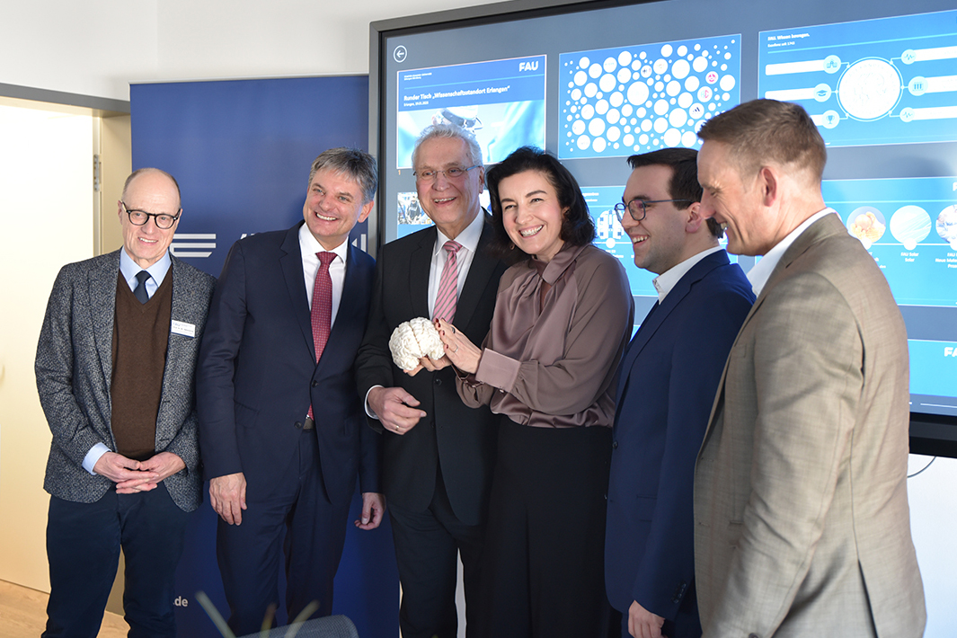 Anlass für die Gesprächsrunde war die Hightech Agenda Deutschland, mit der die Bundesregierung zentrale Weichen für die technologische Zukunftsfähigkeit Deutschlands stellt. Die Europäische Metropolregion Nürnberg, in der Spitzenforschung, innovative Entwicklungen und medizinische Exzellenz eng miteinander verzahnt sind, gehört hierbei zu den wichtigsten und leistungsstärksten Regionen in Deutschland. Deshalb eignete sich der Wissenschaftsstandort Erlangen besonders, um führende Vertreterinnen und Vertreter aus Forschung, Medizin, Wirtschaft und Politik miteinander in den direkten Austausch treten zu lassen.